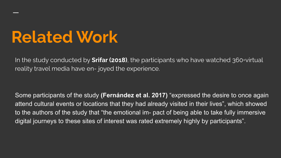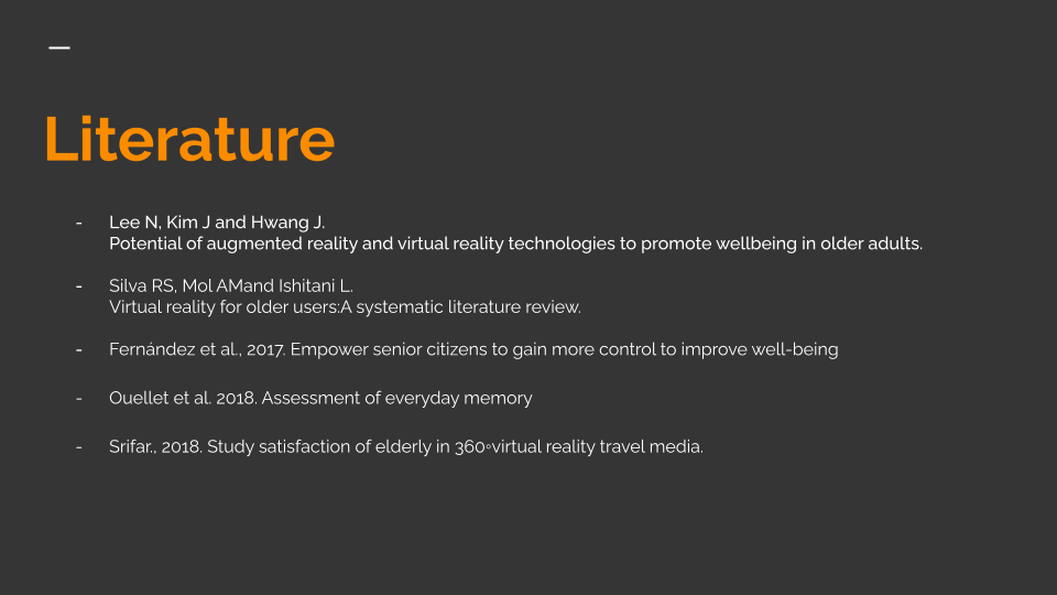 - Srifar, P. (2018). Study satisfaction of elderly in 360° virtual reality travel media.
